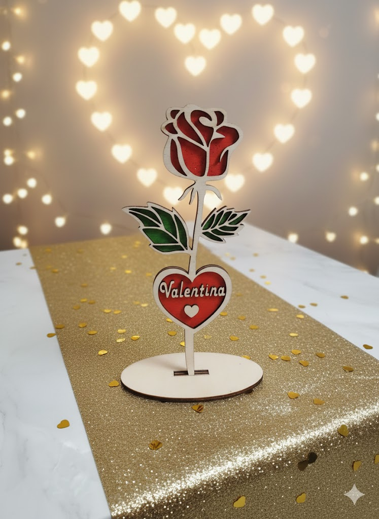 Dăruiți un cadou care nu se ofilește niciodată! Acest trandafir artizanal, realizat cu atenție la detalii din lemn stratificat, este o piesă decorativă unică, creată special pentru a celebra dragostea și momentele de neuitat.
