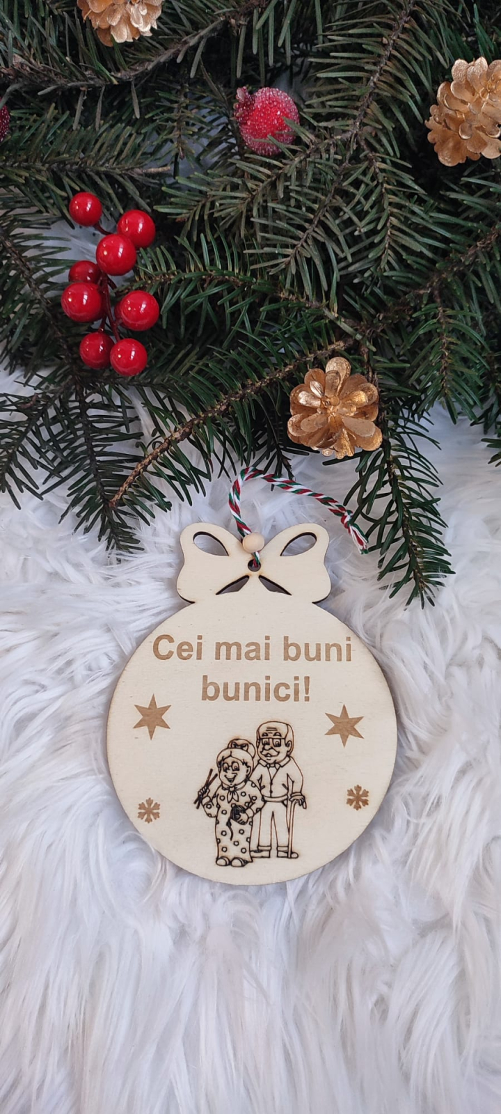 Sărbătoriți căldura și dragostea bunicilor cu un ornament creat special pentru ei! Acest glob din lemn natur este mai mult decât o decorațiune; este un simbol al recunoștinței și al legăturilor de familie care dăinuie peste ani.