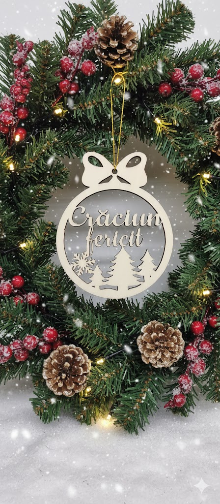 Aduceți simplitatea și farmecul naturii în căminul dumneavoastră cu acest ornament artizanal, creat pentru a transmite cele mai calde gânduri de sărbători. Realizat din lemn natur, acest glob îmbină estetica rustică cu precizia detaliilor lucrate cu drag.